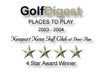 "Just outside Yorktown, golfers will find two superb Ed Ault-designed courses, the Deer Run layout and the Cardinal course, both located at the Newport News Golf Club at Deer Run. Ault cleverly leveraged the beginning Piedmont elevation changes, mixings rolling fairways with surrounding forest. His skill is particularly apparent on the long, well-bunkered final five holes at Deer Run that some call the toughest finishing holes in the Old Dominion. While carts are mandatory at Deer Run, this is not the case at the Cardinal,which extends to 6,700 yards from the back tees. With a sloping fairway and water down the left side, the gorgeous par-5 17th hole is adjacent to a Civil War battlefield. Stray shots will give players a real sense of Virginia history." "Must-Play Courses of the Middle Atlantic" says Washington Golf Monthly (March 2003)